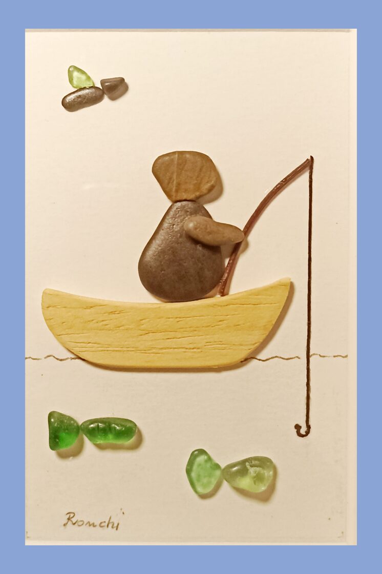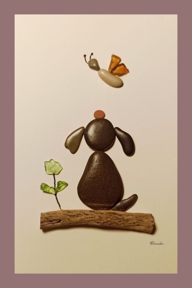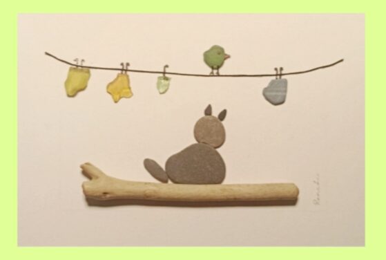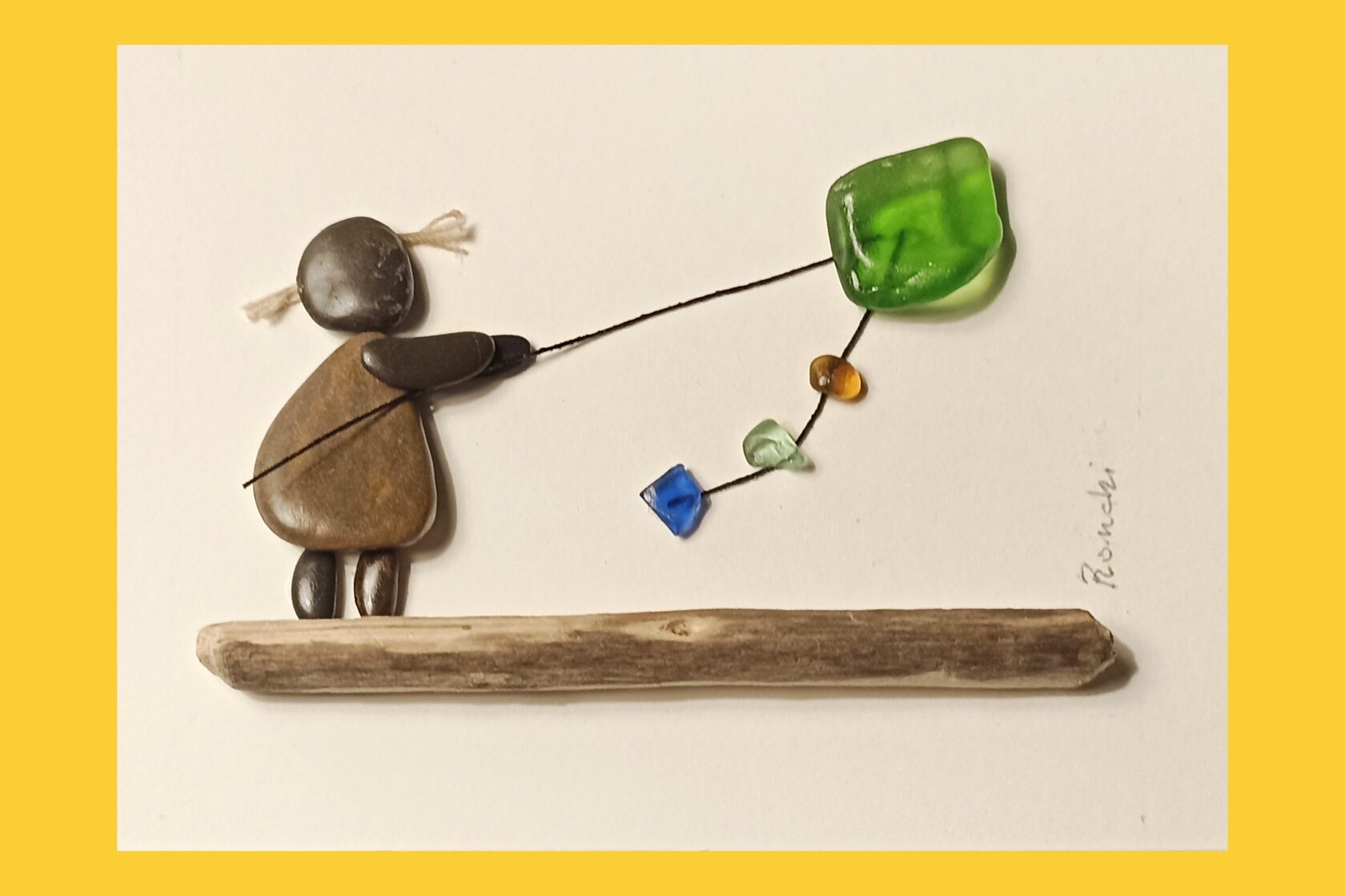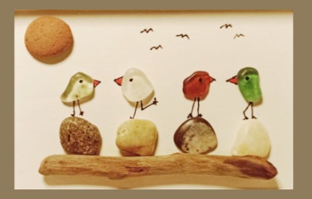 Quadretti realizzati con pietre, legno e vetri di mare -
