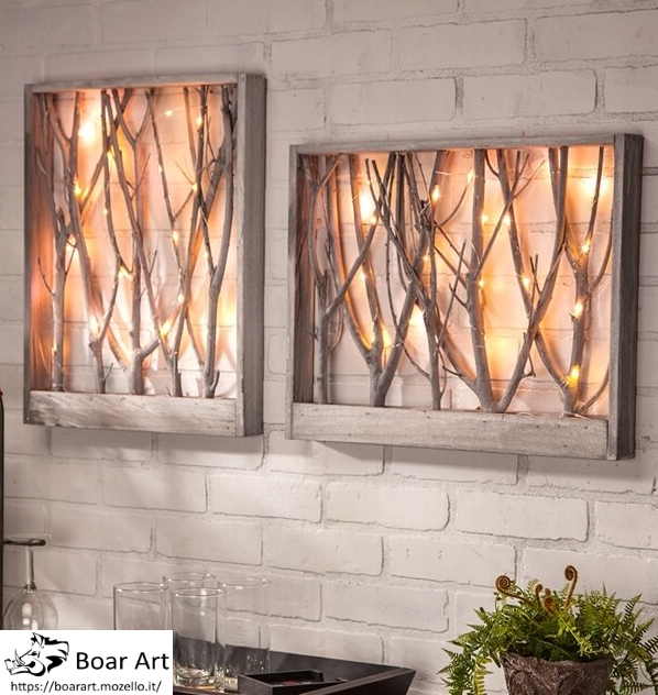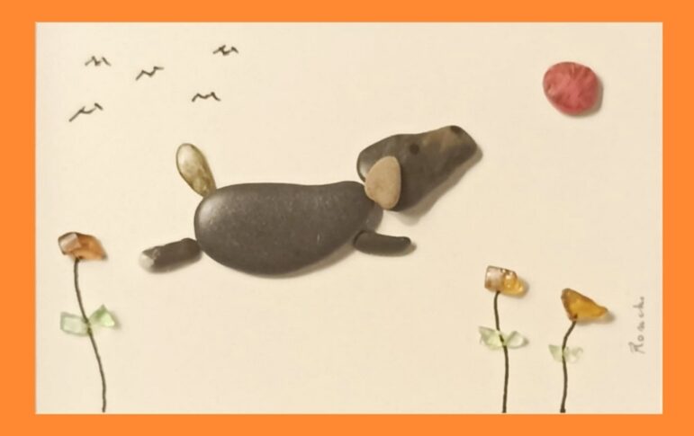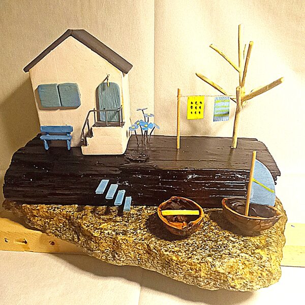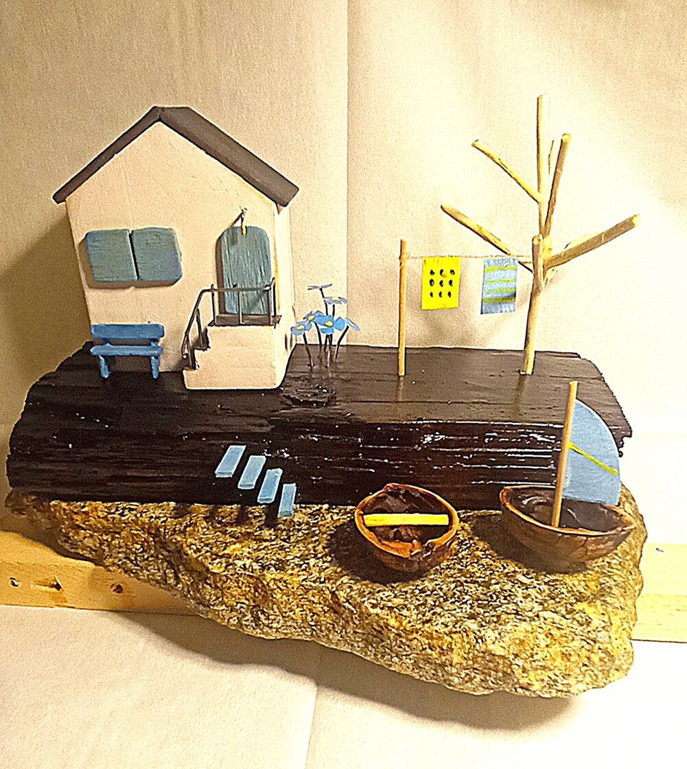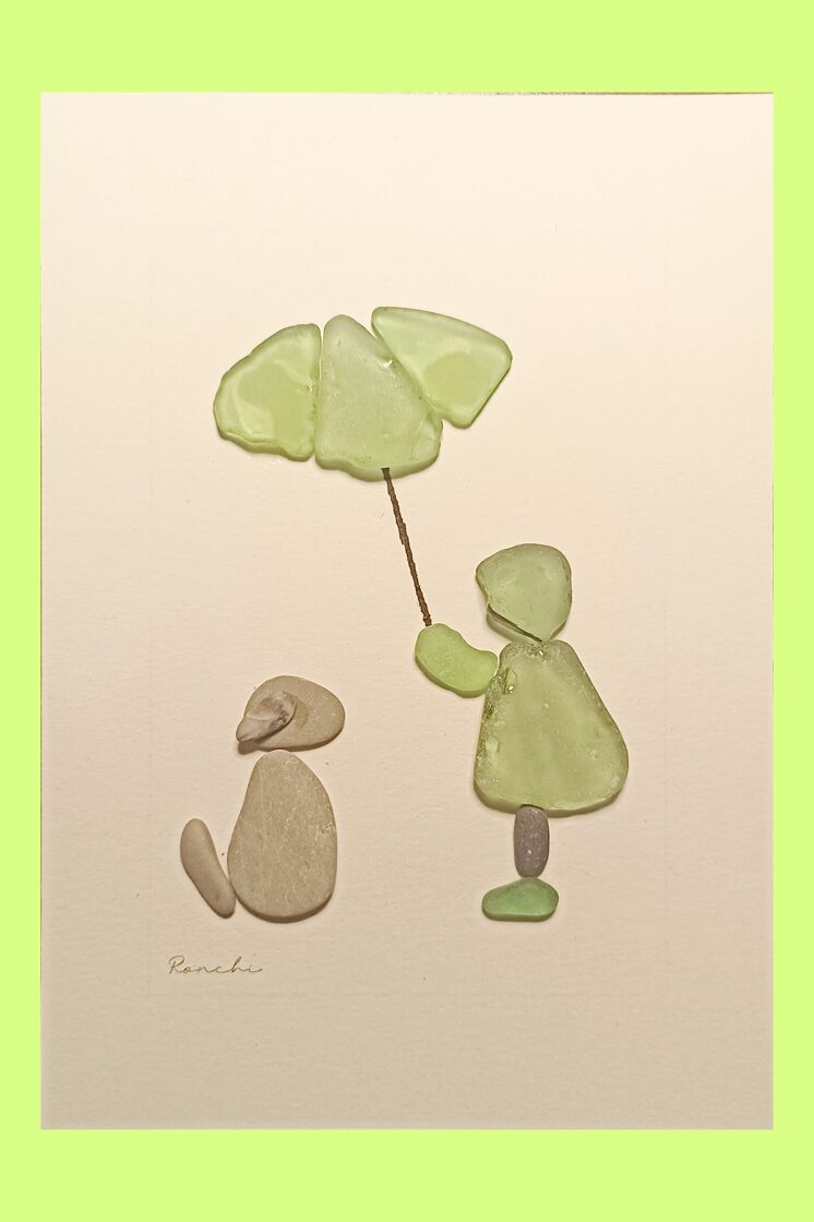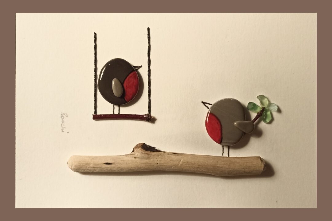 Quadretti realizzati con pietre, legno e vetri di mare -