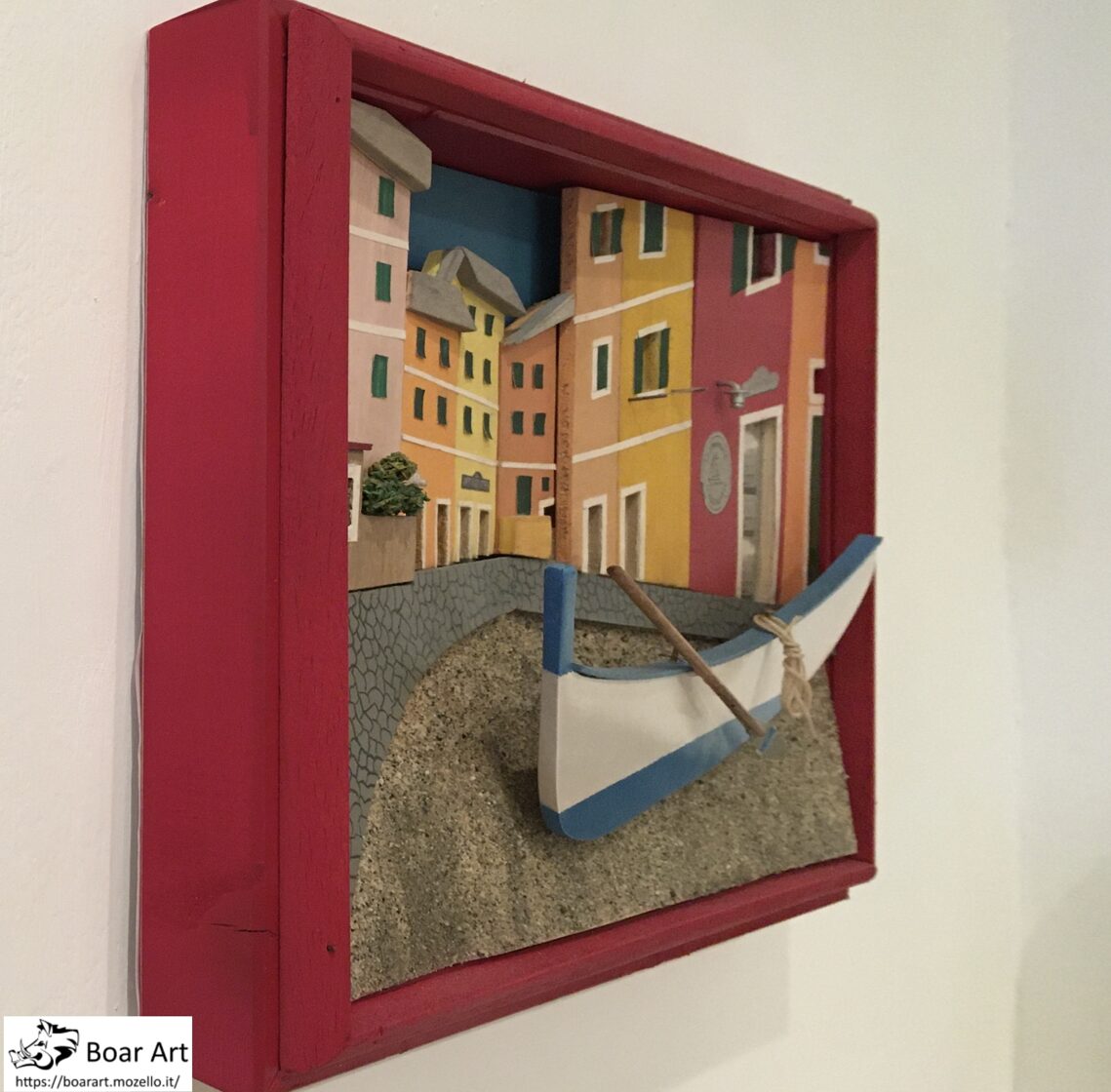 Riproduzione 3d in legno Piazzetta di Boccadasse cm 30x25 -